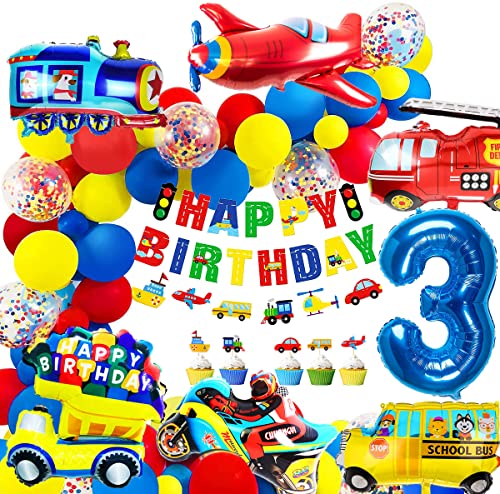 iZoeL Födelsedagsballongfolie brandbil banderoll glatt BIRTHDAY girlang ballonger fest födelsedag barn (3 år gammal)
