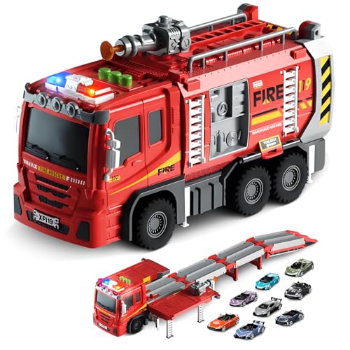 CELMAN Stor brandbil leksak 1:16 med vattenspruta, ljus och ljud, brandkår, fordon, leksak, present för barn pojkar 3 4 5 6 7 8 år