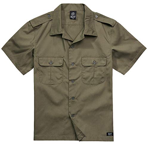 Brandit US skjorta ripstop 1/2 ärm, många färger, storlekar S till 5XL, oliv, L