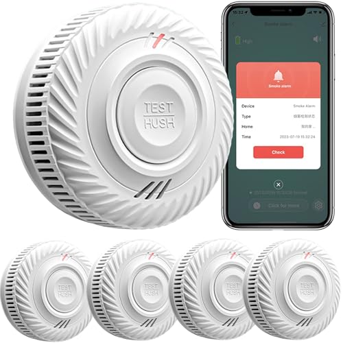 RISOON Smart branddetektor, brandlarm, brandvarnare med avancerad fotoelektrisk sensor, app, fjärrmonitor, brandlarm med 10 års livslängd, 85dB larm med LED-varningslampa. 4 förpackning