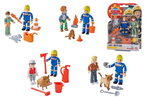 Simba 109252515038 - Brandman Sam Dubbelpack Figurer - Brandman Sam Figurer i Dubbelförpackning Inklusive Djur och Tillbehör, Figurerna är 7,5 cm och Fullt Rörliga, Från 3 år, Slumpmässigt Urval