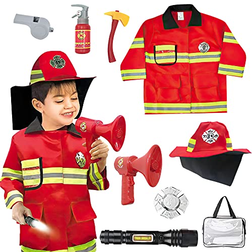 Lotvic Brandmansdräkt, barnbrandkår rollspelsset, tvättbar kostym brandman barn, med brandsläckare brandmansleksak för karneval, temafest