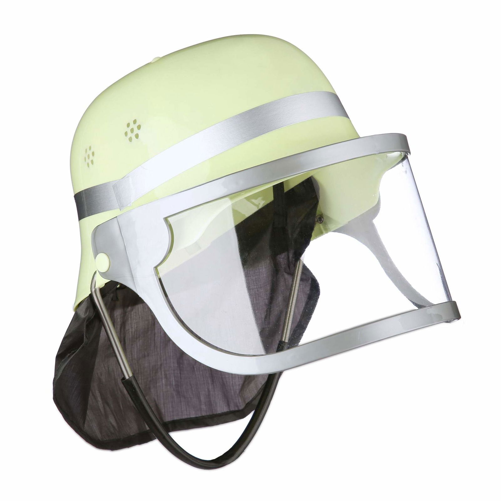 Relaxdays 10029923 brandmanshjälm för barn med visir, halsduk och hakrem, justerbar huvudomkrets, brandmanshatt, gul, pojkar, 1-pack