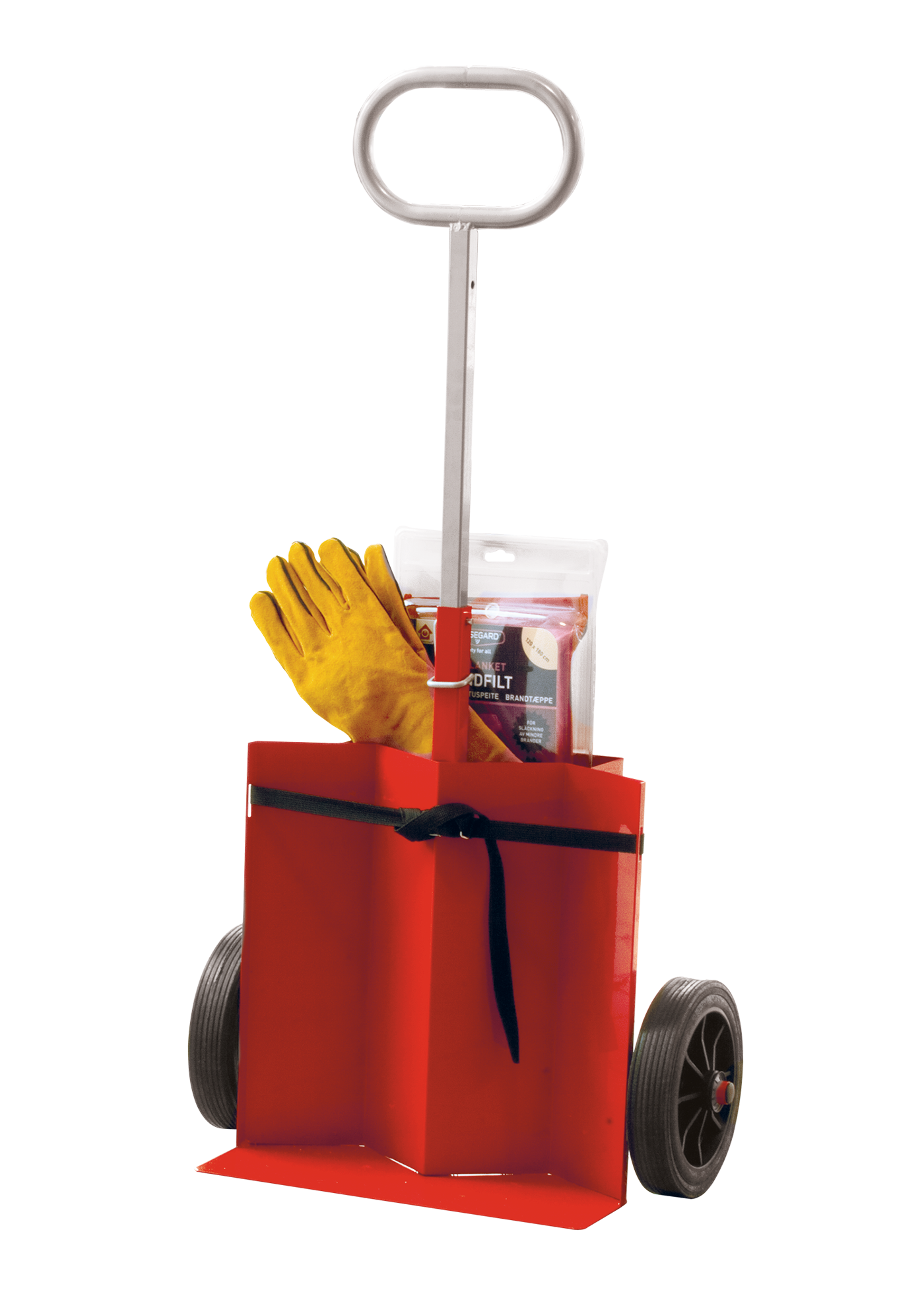 Brandsläckarvagn med brandfilt och handskar, för 2 brandsläckare, Housegard