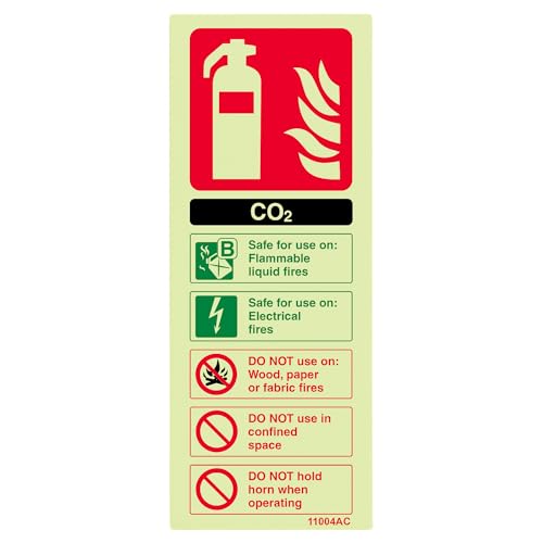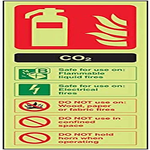 VSafety Glow In The Dark Carbon Dioxid Co2 Id Brandsläckare Skylt - 100 mm x 280 mm - styv plast
