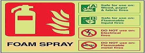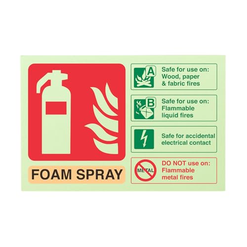 VSafety Glow In The Dark Foam Spray Id Not Elektrisk Säker Brandsläckare Skylt - 75 mm x 200 mm - Självhäftande vinyl