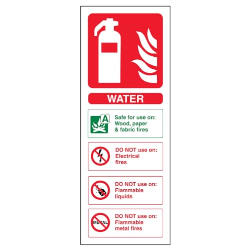 VSafety vatten ID brandsläckare skylt – porträtt – 75 mm x 200 mm – 1 mm styv plast