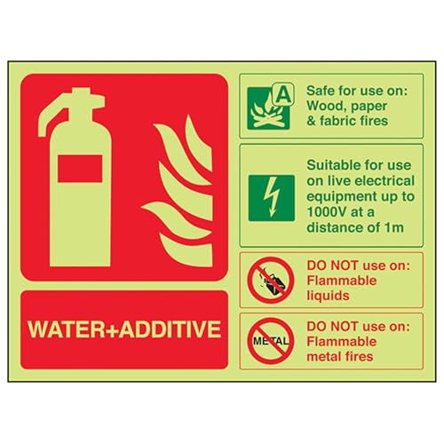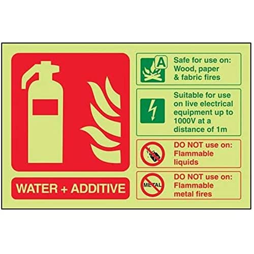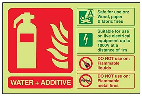 VSafety Glow In The Dark Water Additive Id Brandsläckare Skylt - 200 mm x 150 mm - Självhäftande vinyl