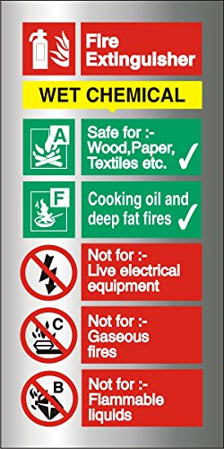 Caledonia skyltar 21231S våt kemisk brandsläckare identifikation skylt, självhäftande vinyl, 75 mm x 200 mm