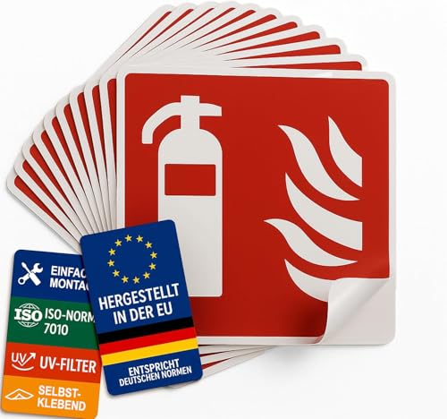 notlok Safety Work – 10 x brandsläckare skylt [ 20 x 20 cm] självhäftande enligt DIN EN ISO 7010 | Brandskyddspiktogram | skylt brandsläckare – inomhus och utomhus | väderbeständiga säkerhetsskyltar