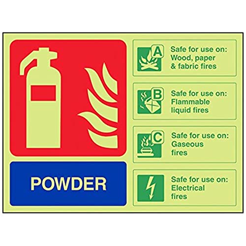 VSafety Glow In The Dark Powder Id Brandsläckare Skylt - 200 mm x 150 mm - Stel plast