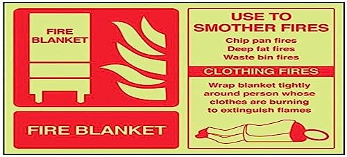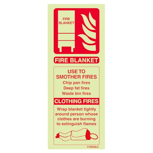 VSafety Glow In The Dark Fire Blanket Id Brandsläckare Skylt - 200 mm x 150 mm - Stel plast
