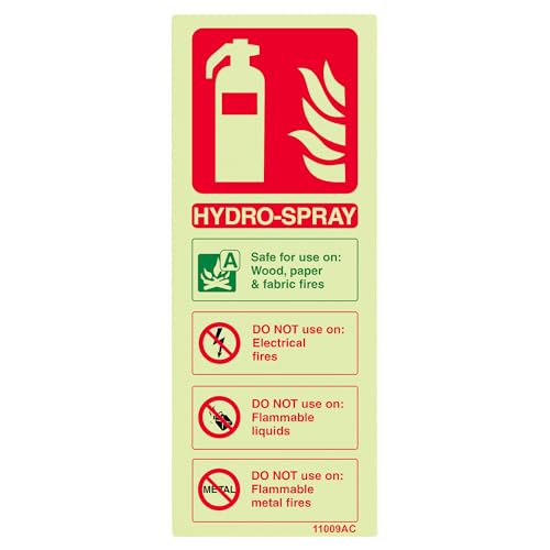 VSafety Glow In The Dark Hydro-Spray Id Brandsläckare Skylt - 75 mm x 200 mm - Stel plast