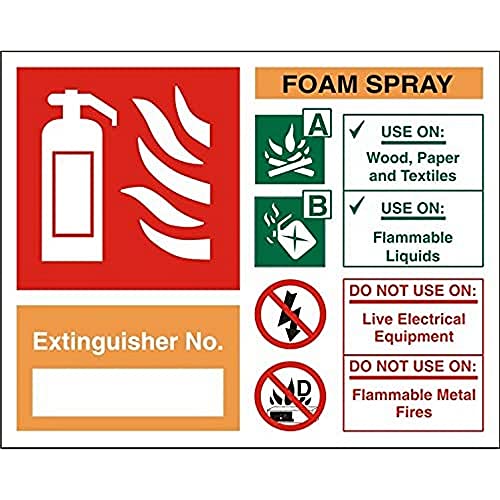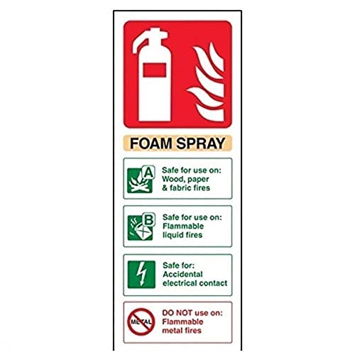 VSafety Foam Spray Id elektrisk säker brandsläckare skylt – 75 mm x 200 mm – självhäftande vinyl