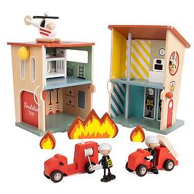EduFun 2-i-1 Brandbil och Brandstation Träleksaksset 12 Delar 1089
