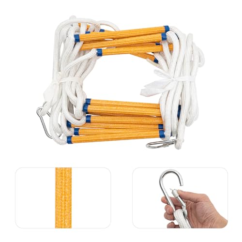 Brandstege 2 våningar 7 meter | Räddningsstege med karbinhakar, lätt, kompakt och portabel | Säkerhetsrepstege, multifunktionell klätterstege och väderbeständig | För barn och vuxna
