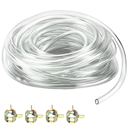 KINGOZOYI PVC-slang 5 m, bensinslang 8 mm x 11 mm med 4 slangklämmor för vattenslang, luftslang, oljeslang, bränsleslang - transparent
