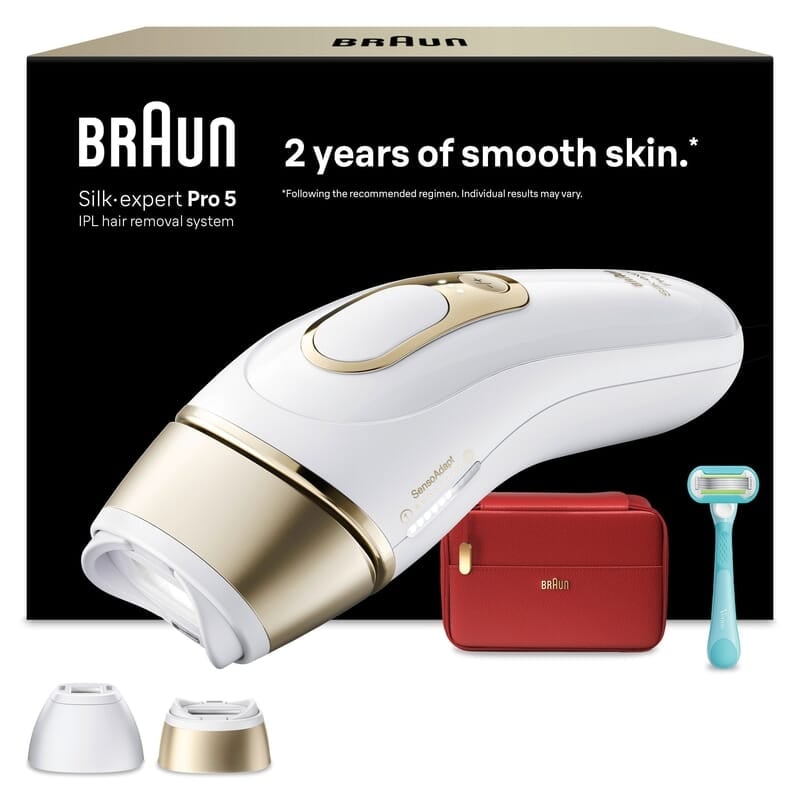 Braun - IPL Silk·expert Pro 5 Hårborttagning Hemma - 2 huvuden - PL5221 - White/Gold