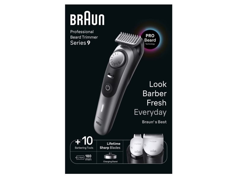 Braun Beardtrimmer 9 Bt9560, Tvättbar, Batteri, Svart, Silver