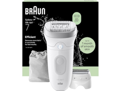 Braun Silk-épil 7 SkinSpa, Epilator med brett huvud för enkel hårborttagning, Wet & Dry, varaktigt slät hud, allt-i-ett-kit, 7-081, Vit/Silver