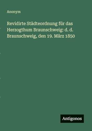 Revidirte Städteordnung für das Herzogthum Braunschweig: d. d. Braunschweig, den 19. März 1850
