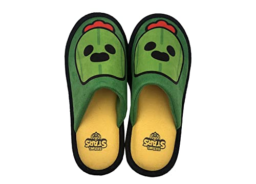 CYPBRANDS Zp-0142-bw Brawl Stars CyP Brands öppna tofflor, design Spike, mjuk, storlek 42/43, grön och gul, officiell produkt, blandad, Grön och gul, 42/43 EU