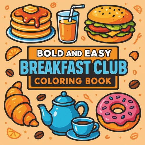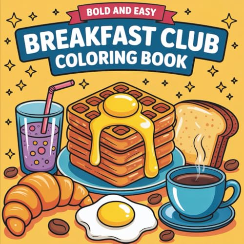 Bold and Easy Breakfast Club Coloring Book: 55 Big, Bold & Easy Coloring Pages for Stress Relief and Relaxation — Featuring Waffles, Coffee, Eggs, and More Classic Morning Favorites!
