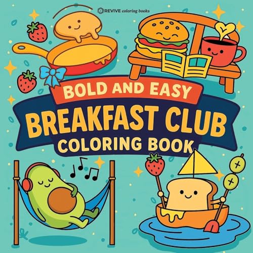 Bold & Easy Breakfast Club Coloring Book: Funny & Cute Cozy Large Print Stress Relief Coloring