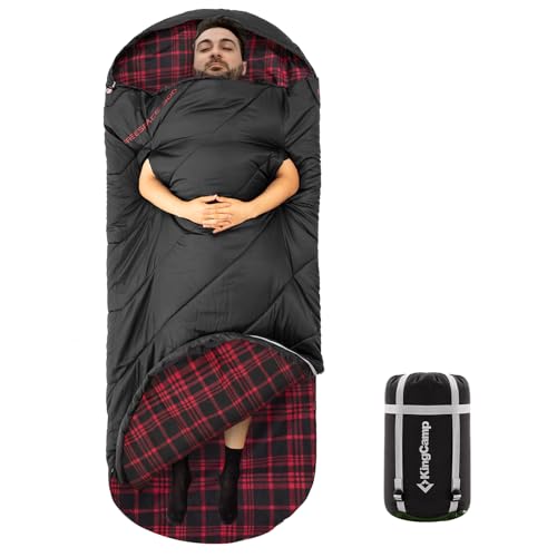 KingCamp Sovsäckar, extra bred flanellsovsäck för vuxna, lätt, bärbar, stor och hög bärbar sovsäck för camping, backpacking, perfekt för kallt och varmt väder utomhus svart