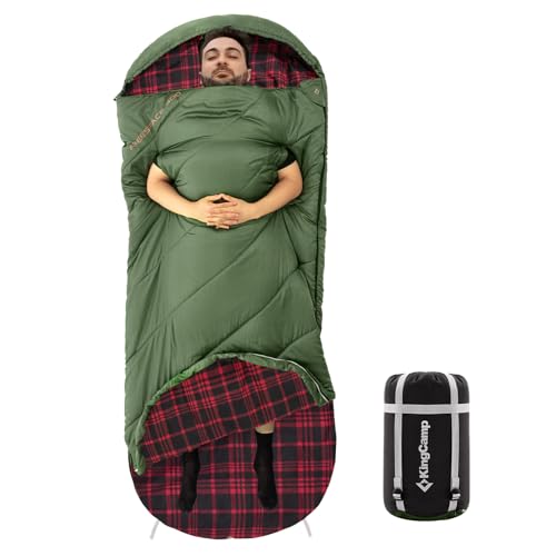 KingCamp XL bred sovsäck för vuxna, 2-3 säsonger, flanellfoder, stor, plusstorlek, enkel, varm, vattentät, lätt för camping, vandring, backpacking, utomhus, med kompressionspåse 220 x 100 cm