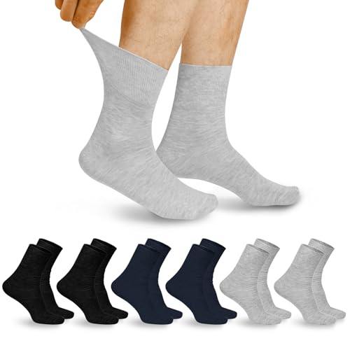 Aomig Extra breda diabetesstrumpor för män 3/6/12 par smarta hållbara strumpor diabetesstrumpor för svullna fötter anklar ben slät tå, Svart*2+marin*2+ljusgrå*2-en storlek, one size