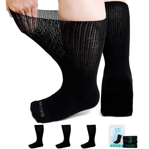 Aomig Extra breda diabetesstrumpor för män, smart hållbar strumpa för stor fot icke-elastisk manschett mjuk komfort, unisex diabetesstrumpor för svullna fötter anklar ben slät tå med stretch sömlös,