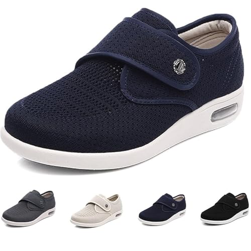 Lätta äldre skor, breda promenadsneakers, breda skor med justerbar stängning, bekväma tofflor, perfekt för diabetes, ödem, plantar fasciit och svullna fötter