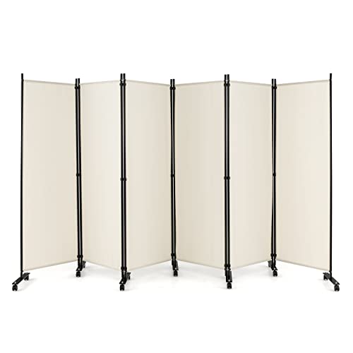 GIANTEX Paravent rumsavdelare på hjul skiljevägg insynsskydd 6 delar 334,5 x 172 cm rumsavdelare vikbar spansk vägg fristående med breda fötter ställvägg av tyg, privat skydd