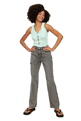 Trendyol Kvinnors slitna detaljerad hög midja med breda benjeans jeans, antracit, 34