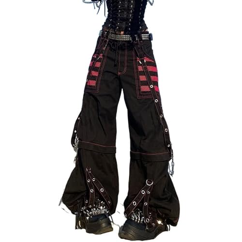 Kvinnor Y2k-jeans, gothstil, byxor i punkig emostil, säckiga, utsvängda jeans, breda ben, Harajuku grunge-byxor, hiphop-kläder, L