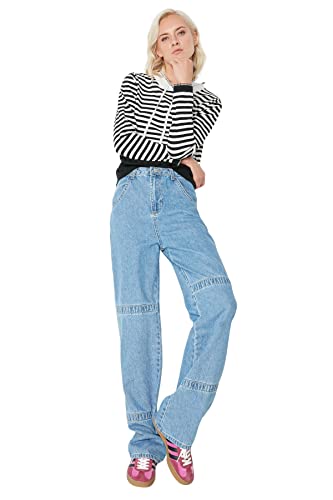 Trendyol Kvinnors blå hög midja 90-talet breda ben jeans, 36