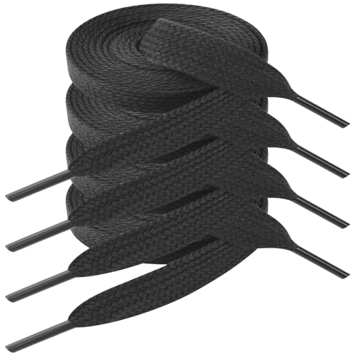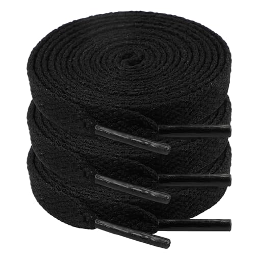 Vicloon 2 par 15 mm breda platta skosnören, premium slitstarka skoband, universella ersättningsslaces av bomull för sneakers, sportskor, löparskor, gymnastikskor, barnskor, 2 par-svart-120 cm, 2 Paar