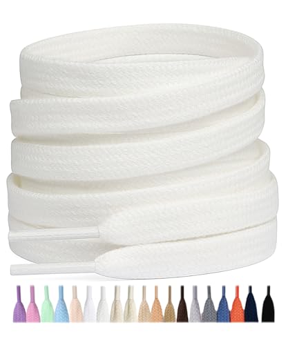 Stepace 2 par platta skosnören av 100% bomull,8 mm breda slitstarka skoband för sneakers,sportskor,löparskor off white 120