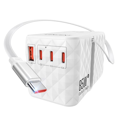 LENCENT Internationell Reseadapter, 85W GaN3 Universaladapter med Snabbladdningsportar av 3 Typ C och 1 USB A, världsomspännande Laddare, allt-i-ett-resekontakt för EU/USA/UK/AU, Vit