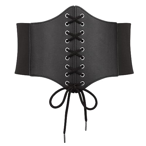 WERFORU Dam brett bälte vintage elastiskt midjebälte falskt läder korsett bälte snörning cinch midjebälte, A-svart, Passend für Taillengröße 76-85cm