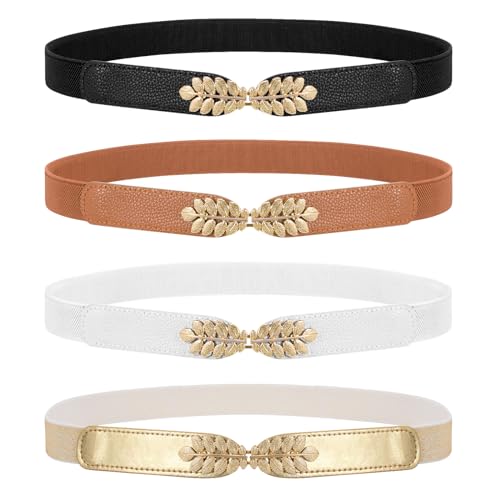 WERFORU Elastiskt midjebälte för kvinnor vintage brett bälte för klänning kvinnor mode stretchigt cinch bälte, B-svart + vit+brun+guld, Passt Taillenumfang 82-99cm