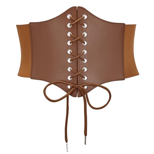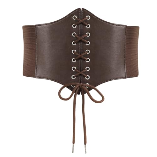 WERFORU Dam brett bälte vintage elastiskt midjebälte falskt läder korsett bälte snörning cinch midjebälte, B-kaffe, Passend für Taillengröße 116-125cm