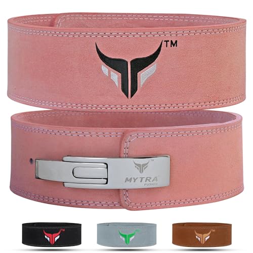 Mytra Fusion Viktlyftarbälte för Män och Kvinnor – Träningsbälte för Gym, 10 mm Tjockt och 10 cm Brett, 100% Äkta Läder – Bälte för Viktlyftning, Powerlifting, Träning och Bodybuilding (Pink,M)