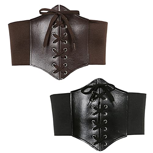 Spldsun 2 stycken retro dam midja korsettbälte, korsett elastiskt midjebälte, dam brett bälte korsett, gäller för dam korsetter halloween partyklänningar, SVART BRUN