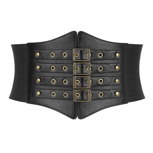 WERFORU Korsett bälte brett bälte dam för halloween karneval, svart, Fit Waist Size 75-84cm