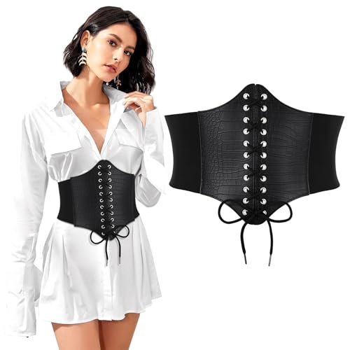 TRIWORKS Dam korsett bälte snörkorsett elastisk korsett snörning brett band tigt waspie midjebälte vintage halloween karneval cosplay kostym, Krokodil präglad svart, Passende Taille 39"-42"