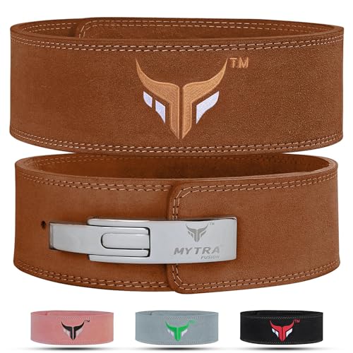 Mytra Fusion Viktlyftarbälte för Män och Kvinnor – Träningsbälte för Gym, 10 mm Tjockt och 10 cm Brett, 100% Äkta Läder – Bälte för Viktlyftning, Powerlifting, Träning och Bodybuilding (Brown,L)