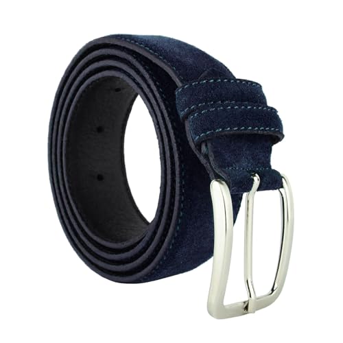 GRESEL Bälte av äkta mocka för män och kvinnor, äkta läder, tillverkat i Italien, justerbar, 3,5 cm brett, blå, 110 (Größe 48-50)