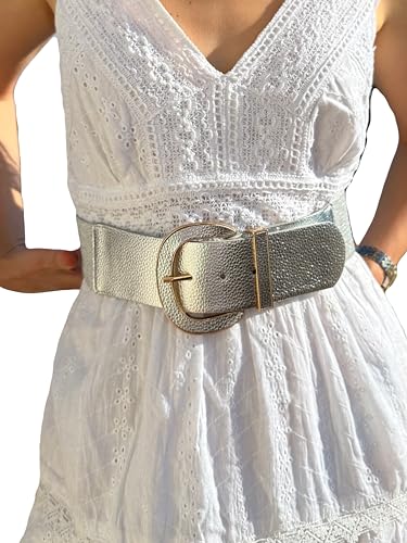 MIGURA Bälte Dam elegant läder brett för olika kläder Fajin klänningar vintage mode midja justerbar passform figur universell storlek silvermetallspänne, Silver, Adaptable